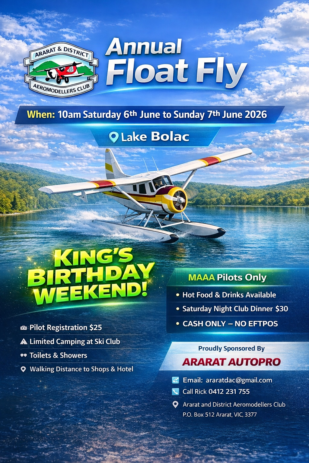 Ararat and District Aeromodellers Club is once again holding it's annual float fly at Lake Bolac