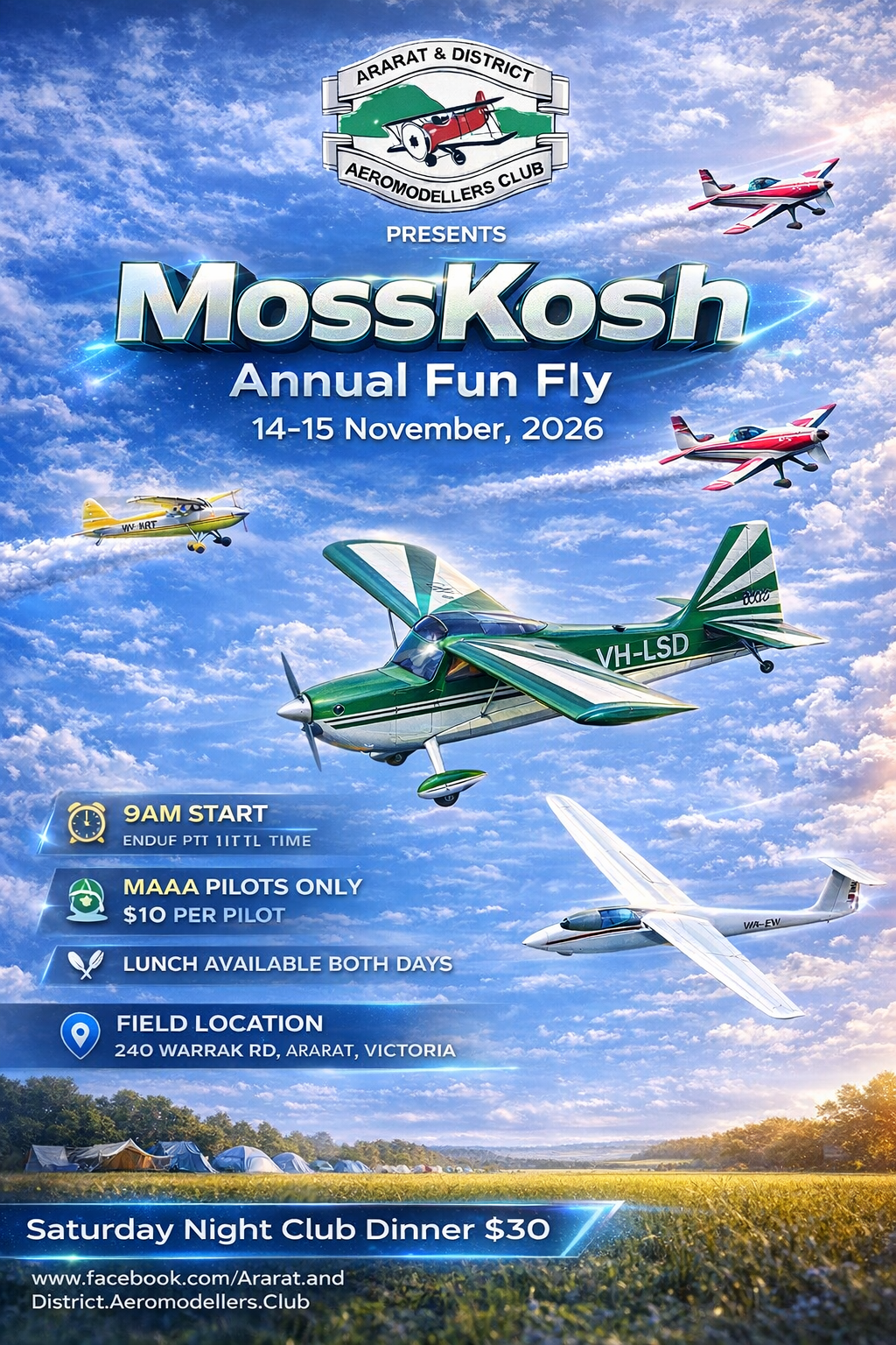 Ararat and District Aeromodellers Club is again holding it's annual MossKosh fun fly event